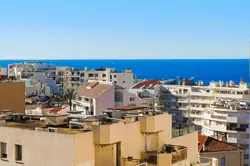 Leiligheten er en toroms nær stranden og gamlebyen i Cannes, i et velholdt sameie. Dette er en lys og romslig hjørneleilighet med to terrasser, den ene med en flott havutsikt mot sør. Den ligger i sjette (norsk) etasje, dvs nest siste etasje.