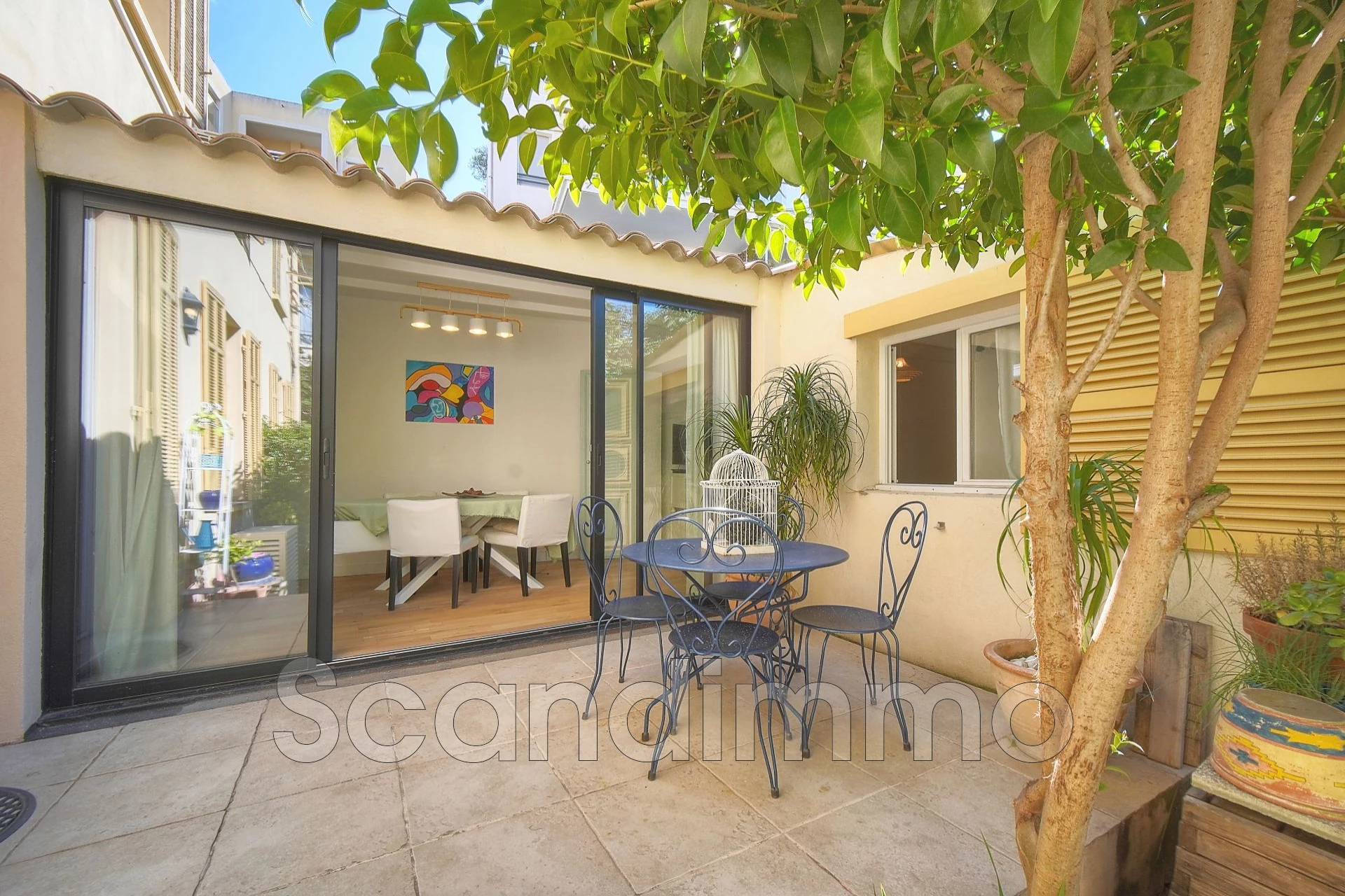 Den sørvendte hagen på cirka 40 m², kombinert med en 12 m² stor terrasse, skaper en fredelig og privat atmosfære der du kan nyte solen dagen lang. Her får du følelsen av å bo i et lite hus, midt i byen. I tillegg følger det med ene privat parkeringsplass inne på eiendommen – en svært sjelden luksus i denne delen av Cannes.