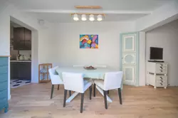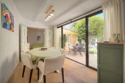 I tilknytning til stuen ligger en hyggelig spisestue med direkte utgang til uteområdet.